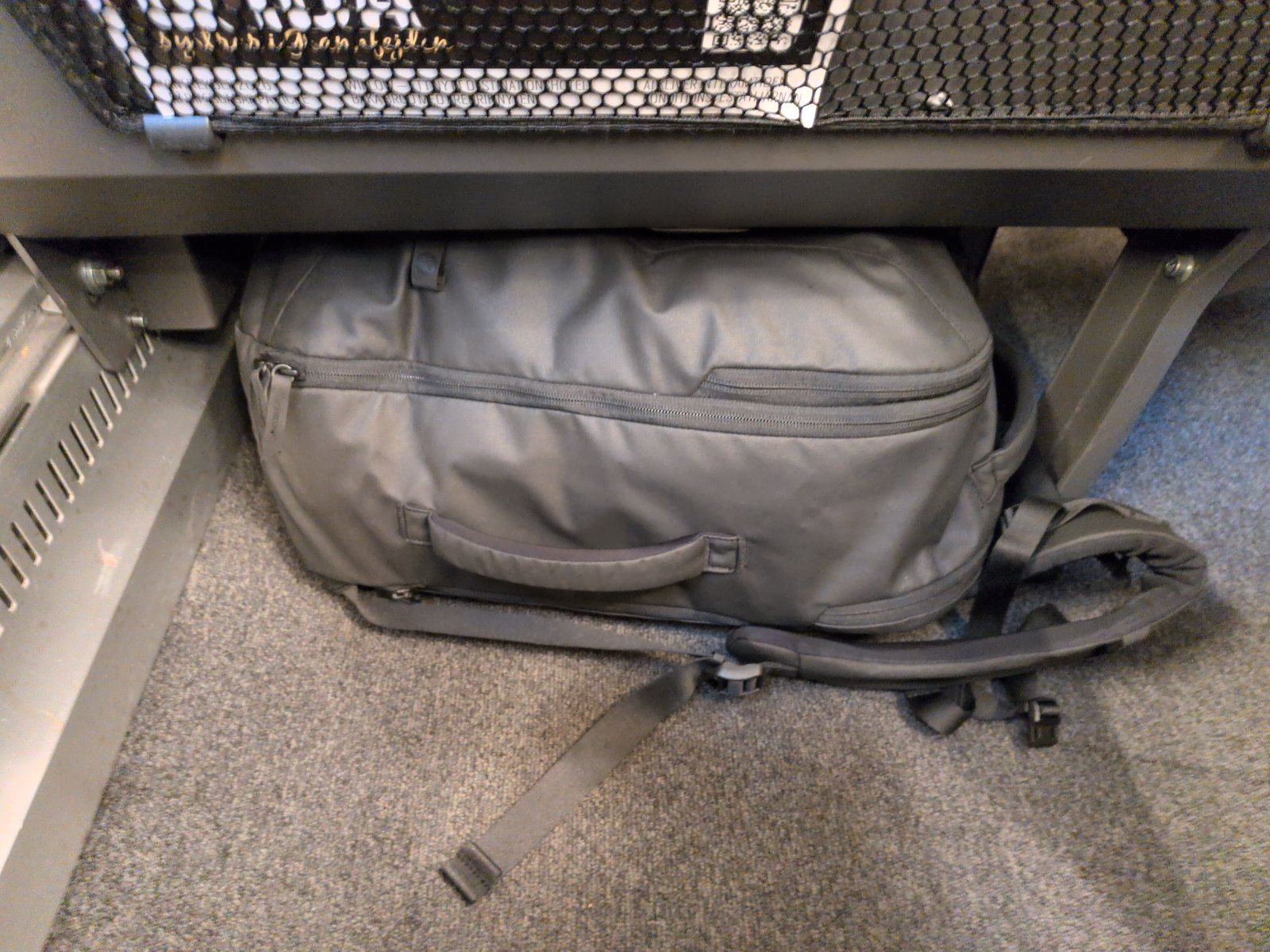 I was a bit worried that the bag wouldn’t fit under the front seat but it worked out well. I didn’t take a picture of it but it fit in the overhead compartment during the flight too.